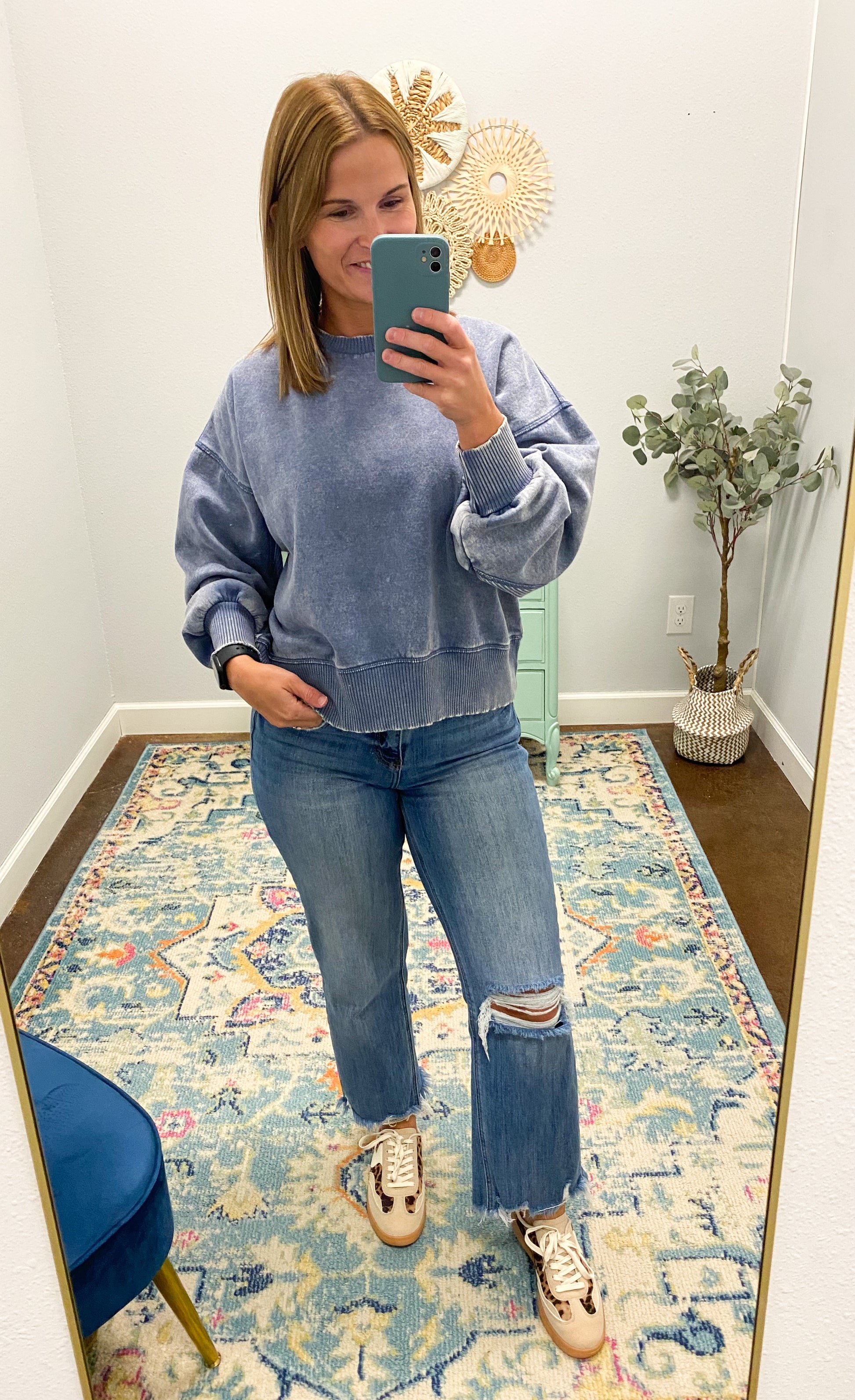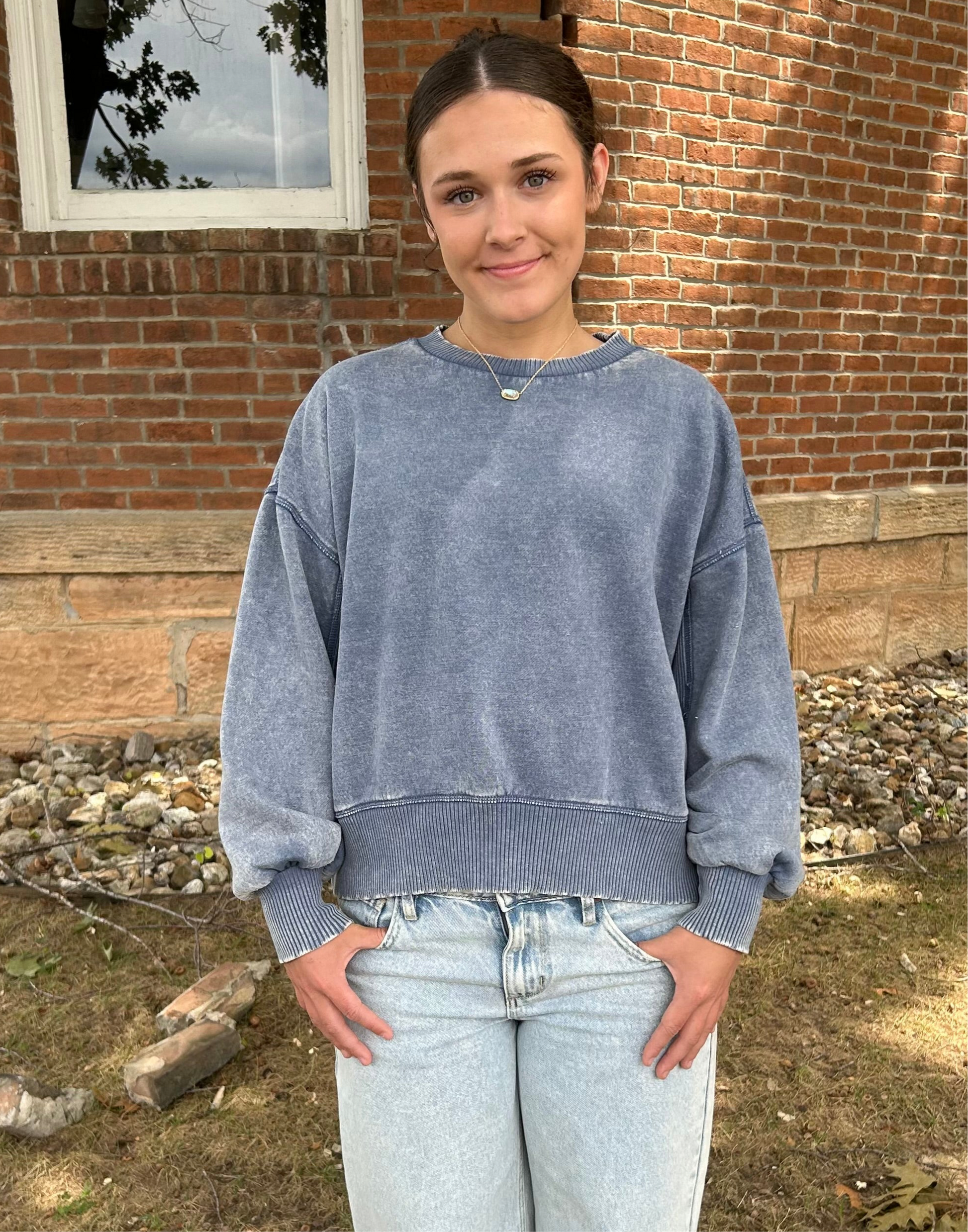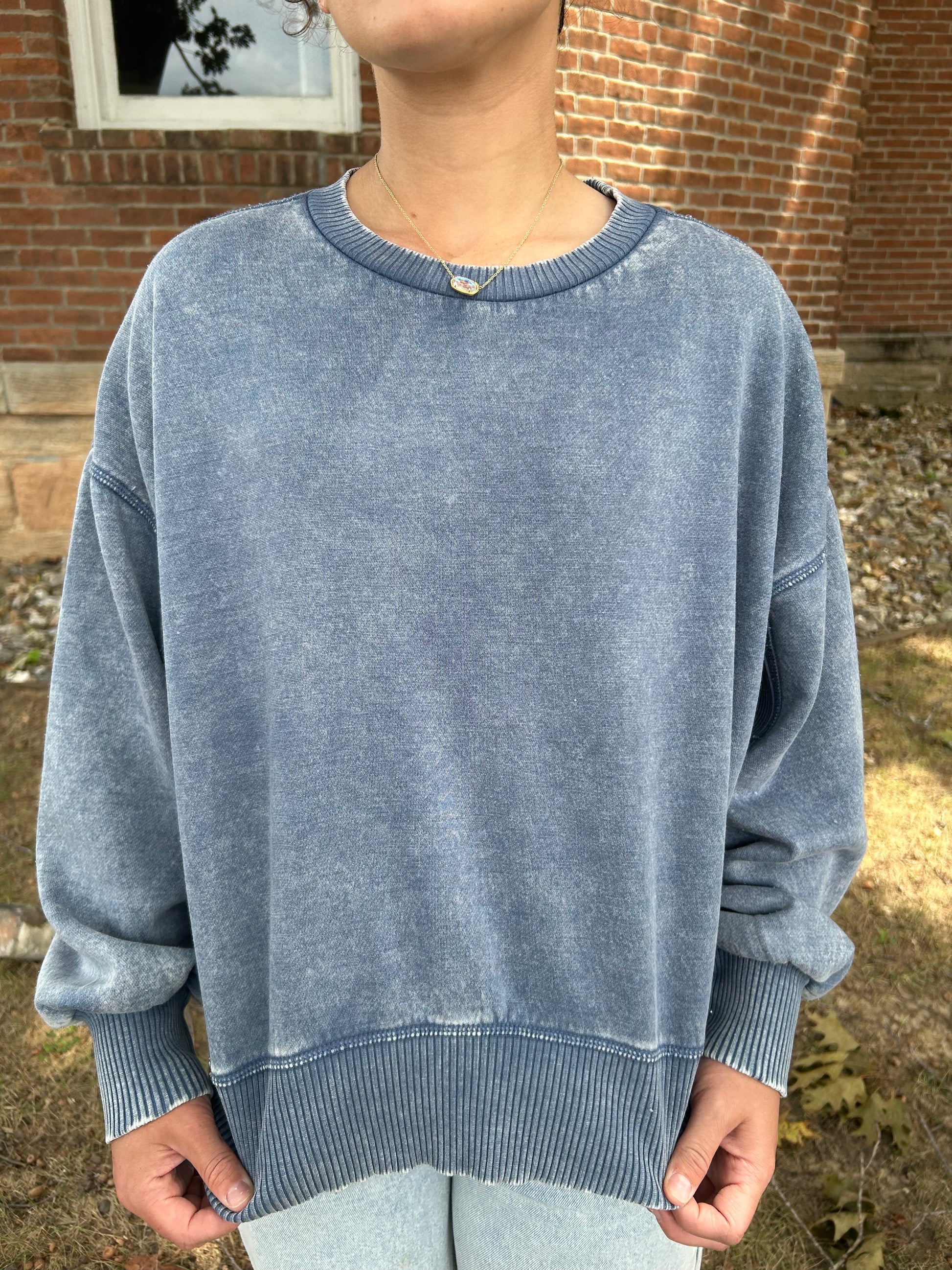 Acid Wash Oversized Fleece Pullover, Dusty Blue