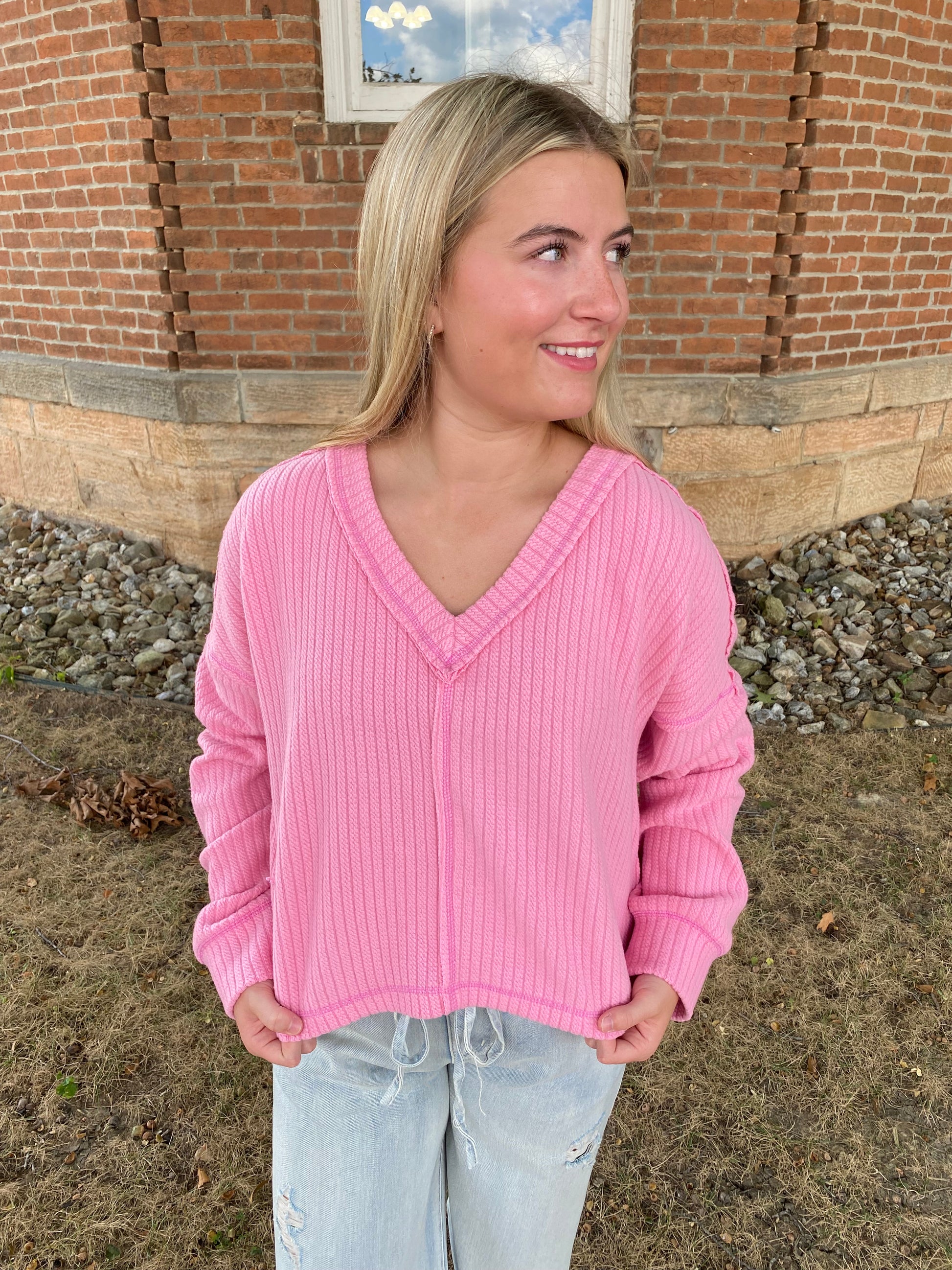 Casual Comfy Soft V-Neck Knit Top, Pink