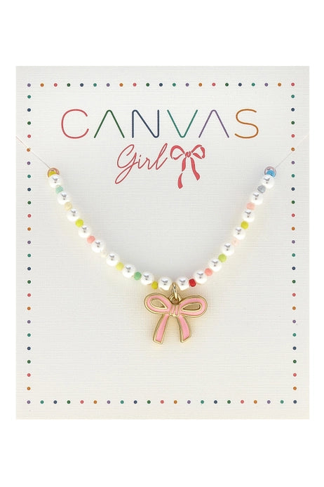 Clementine Beaded Pearl Enamel Bow Children's Necklace