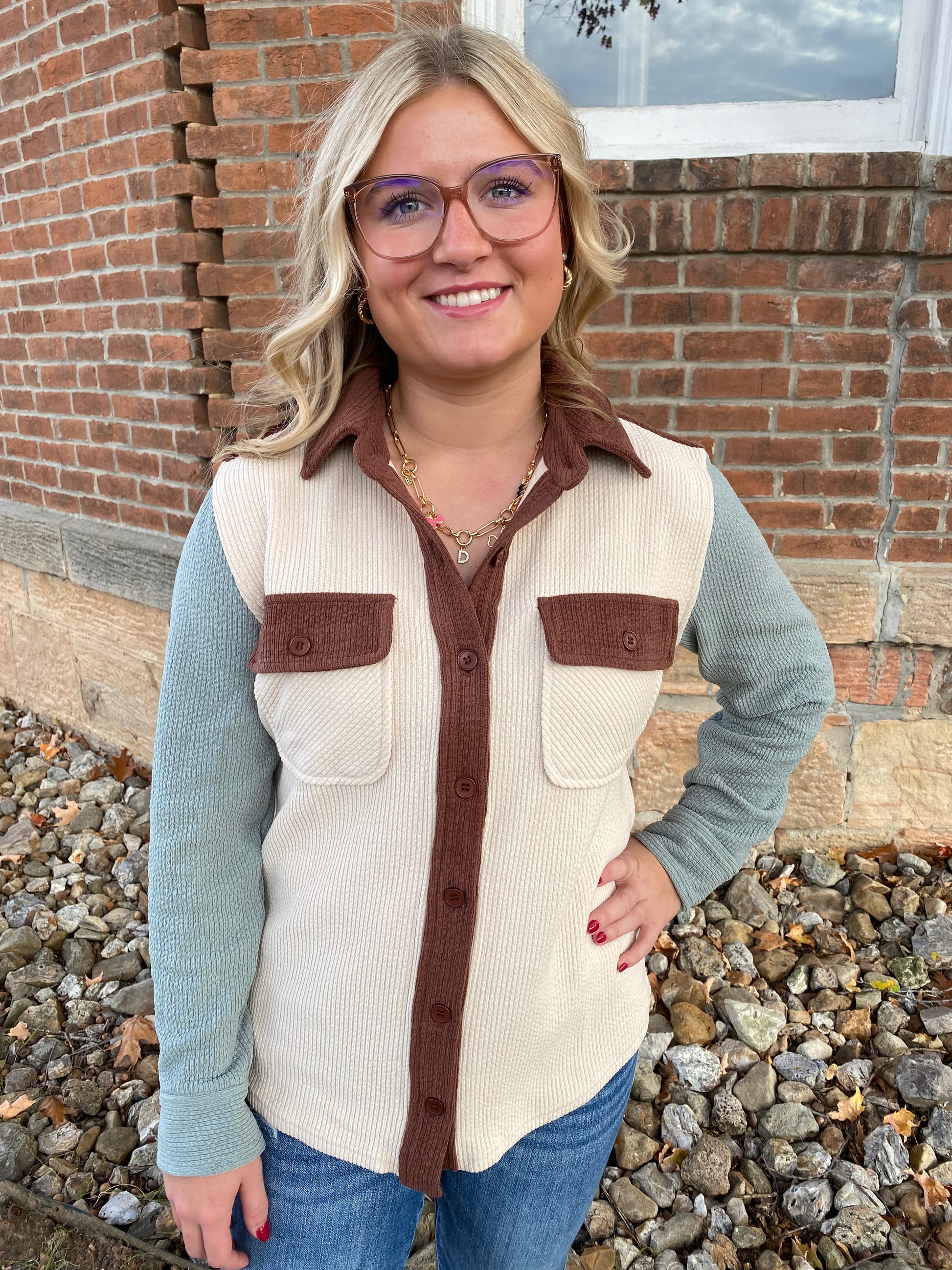 Color Blocked Knit Corduroy Shacket