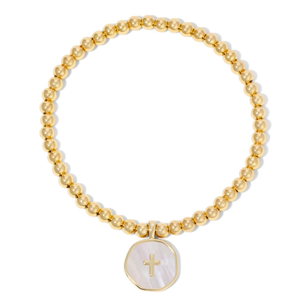 Cross Accented Shell Charm Stretch Bracelet