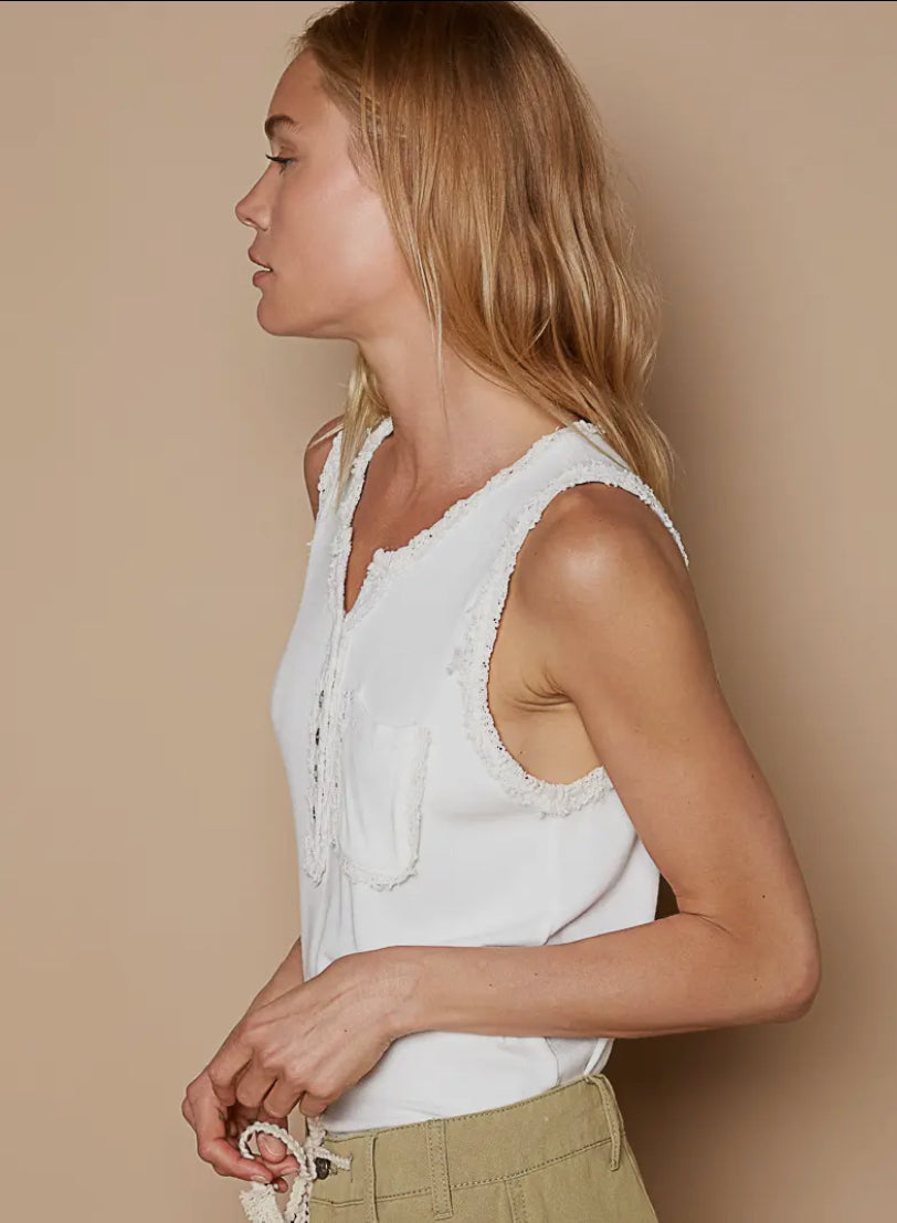 Delicate Touch Henley Tank, Off White