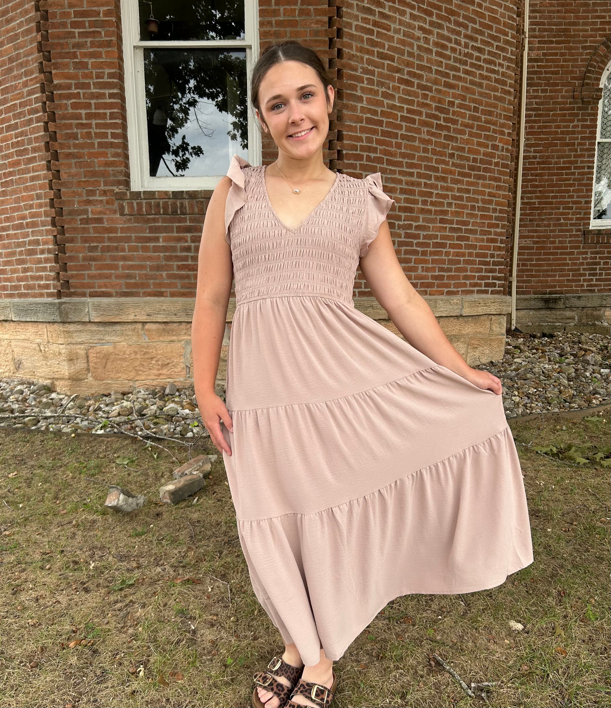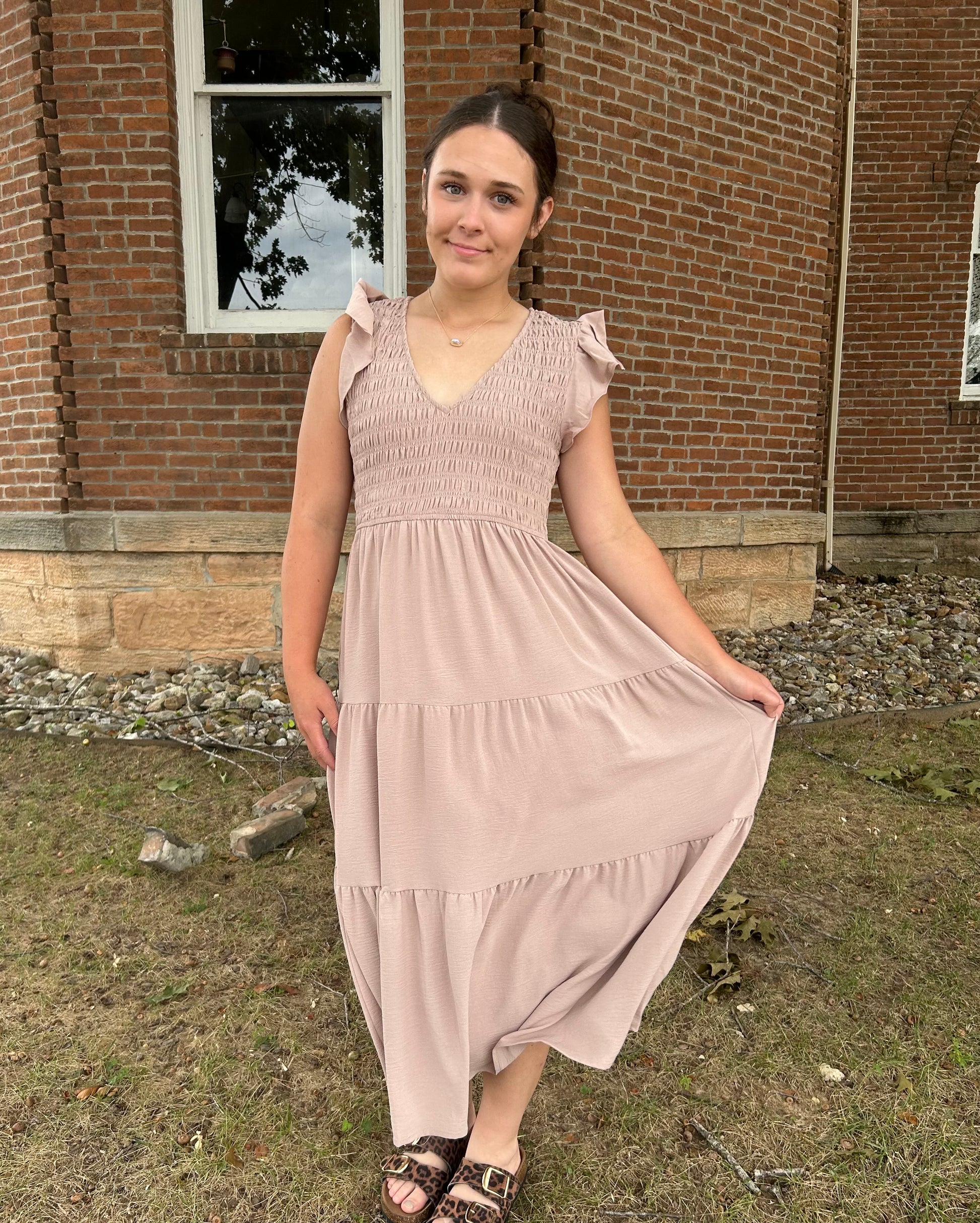 Flutter Sleeve Maxi Dress, Khaki