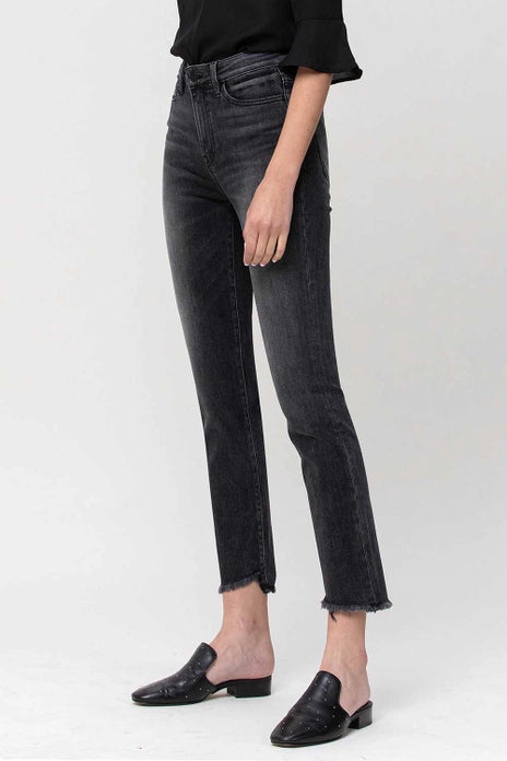 Flying Monkey High Rise Cropped Raw Straight Jeans