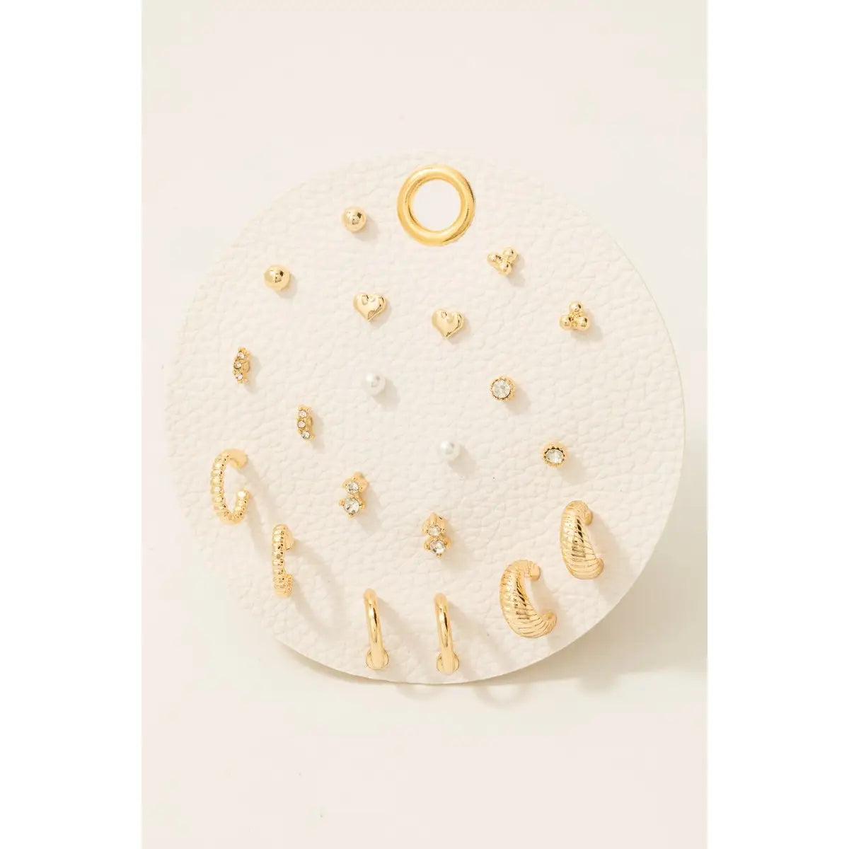 Heart Pearl Gems Mixed Stud and Hoop Earrings Set