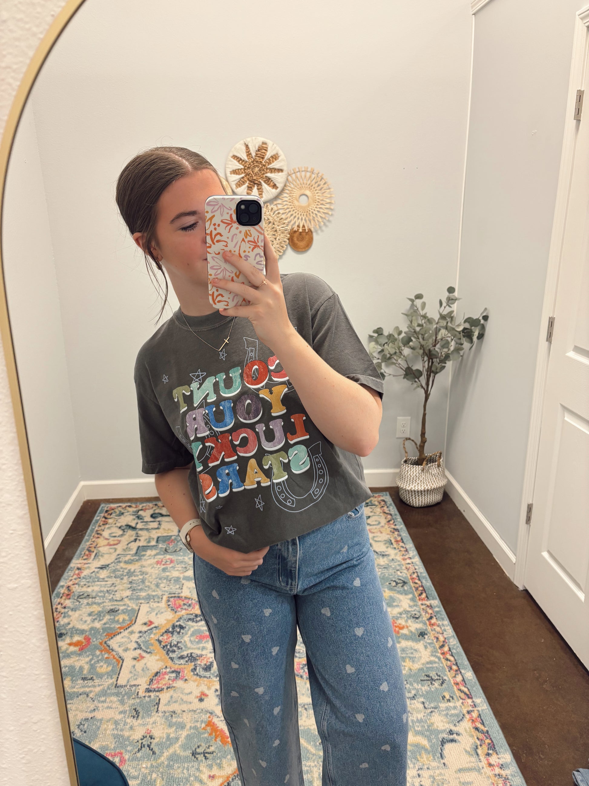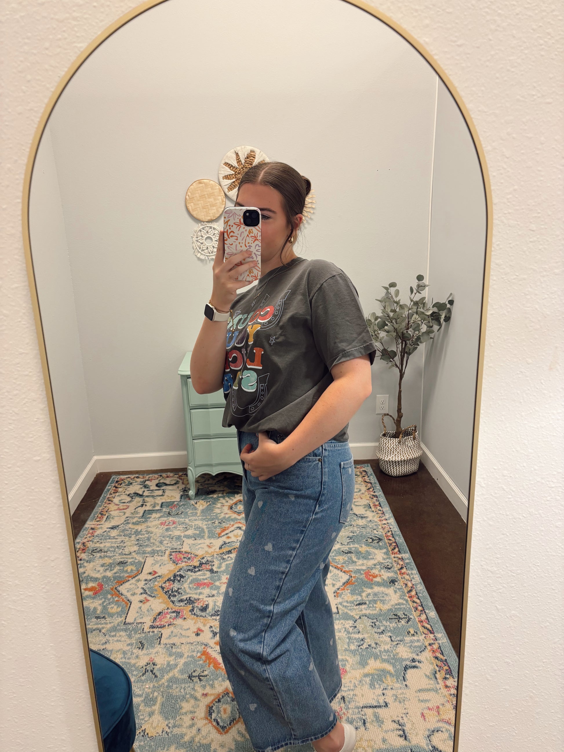 Heart Printed Denim Jeans