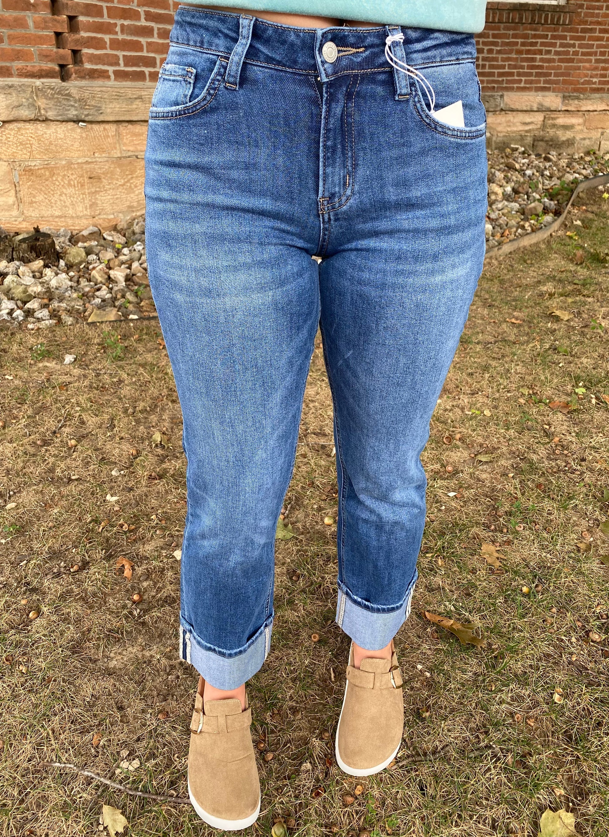 Lovervet High Rise Cuffed Ankle Straight Jeans
