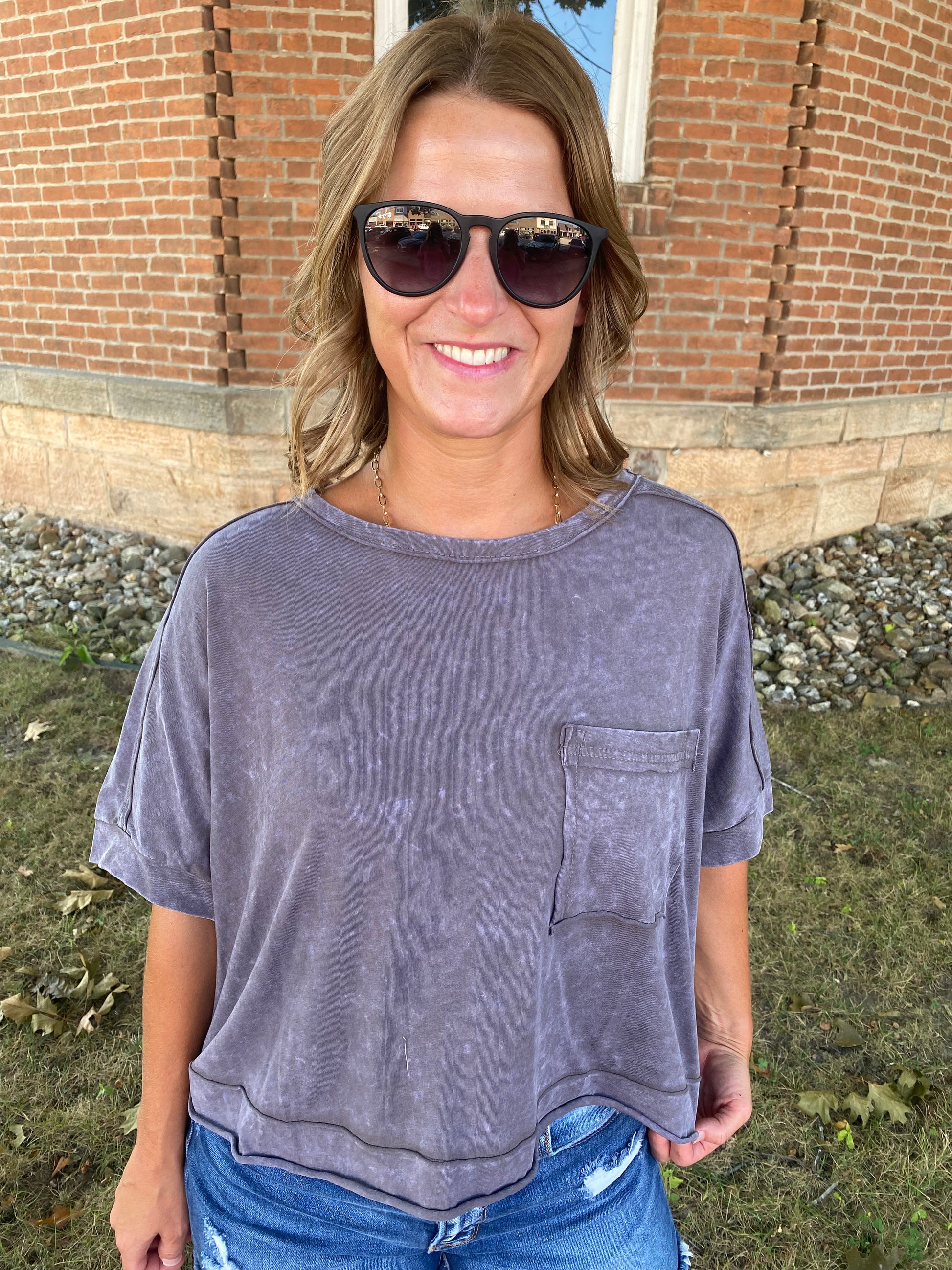Mineral Wash Crop Crewneck, Black