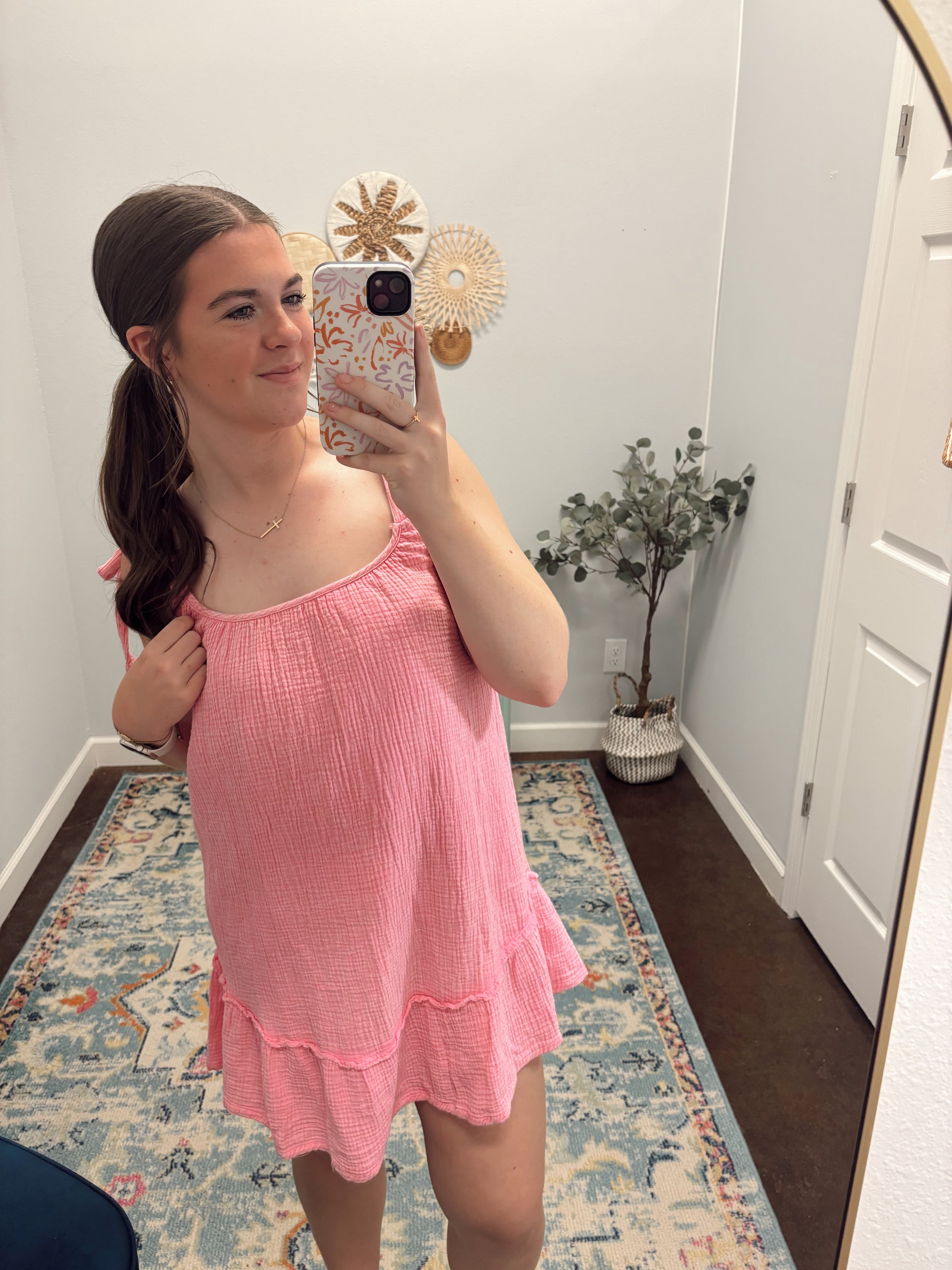Mineral Washed Shoulder Tie Mini Dress, Pink
