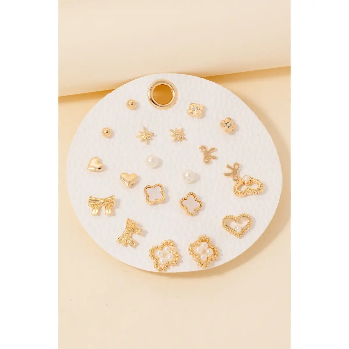 Mixed Ribbons and Pearl Clover Stud Earrings Set