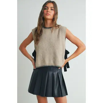Mock Neck Sleeveless Sweater, Taupe/Black