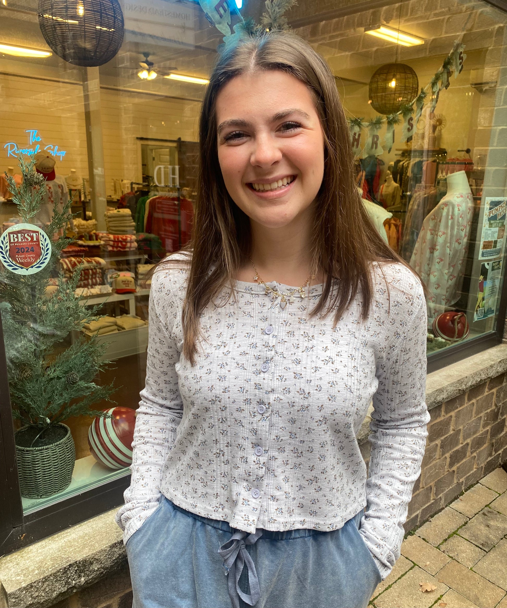 Printed Button Down Knit Cardigan Top, Blue Floral