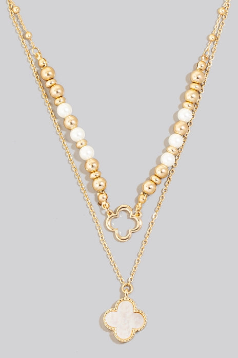 Seashell Clover Pearl Beaded Layered Chain Necklace