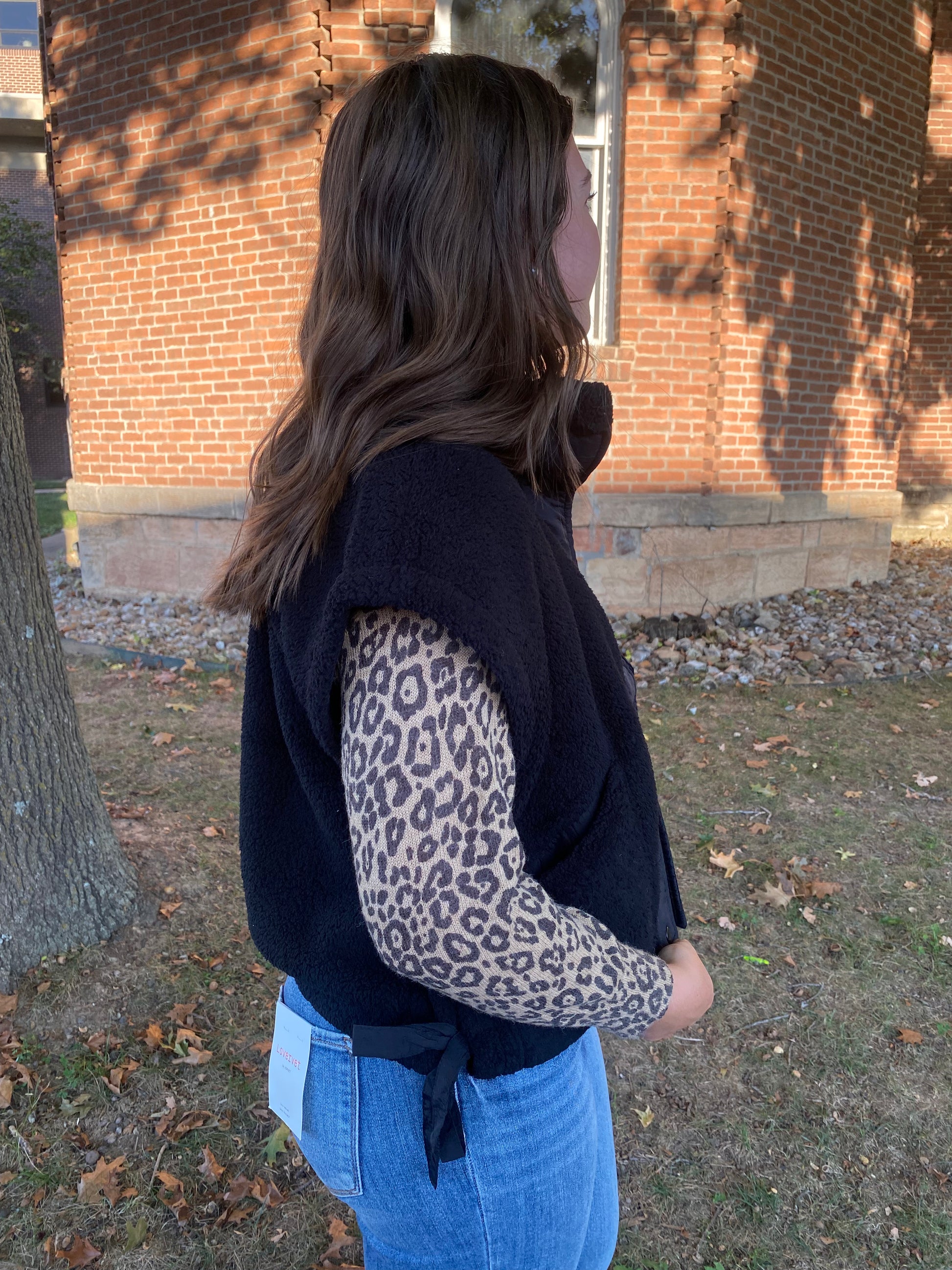 Side Bow Oversized Sherpa Vest, Mocha, Black