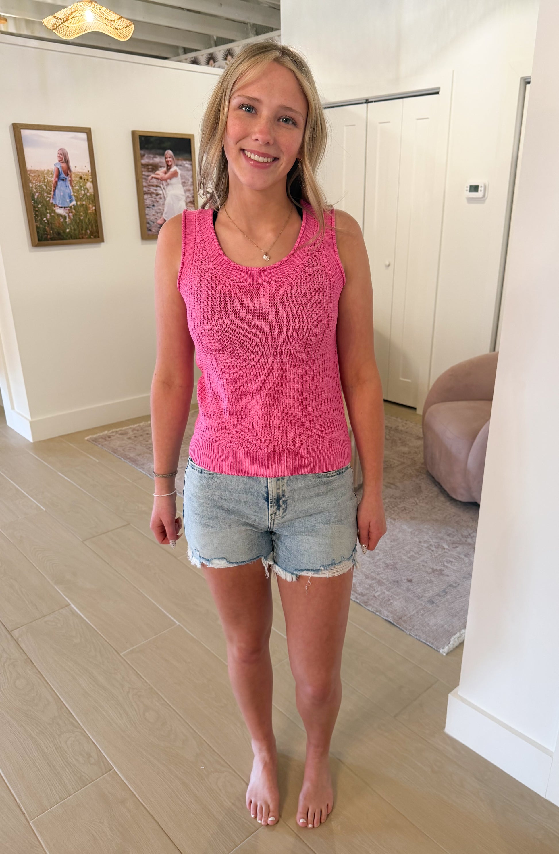 Sleeveless Sweater Tank, Hot Pink