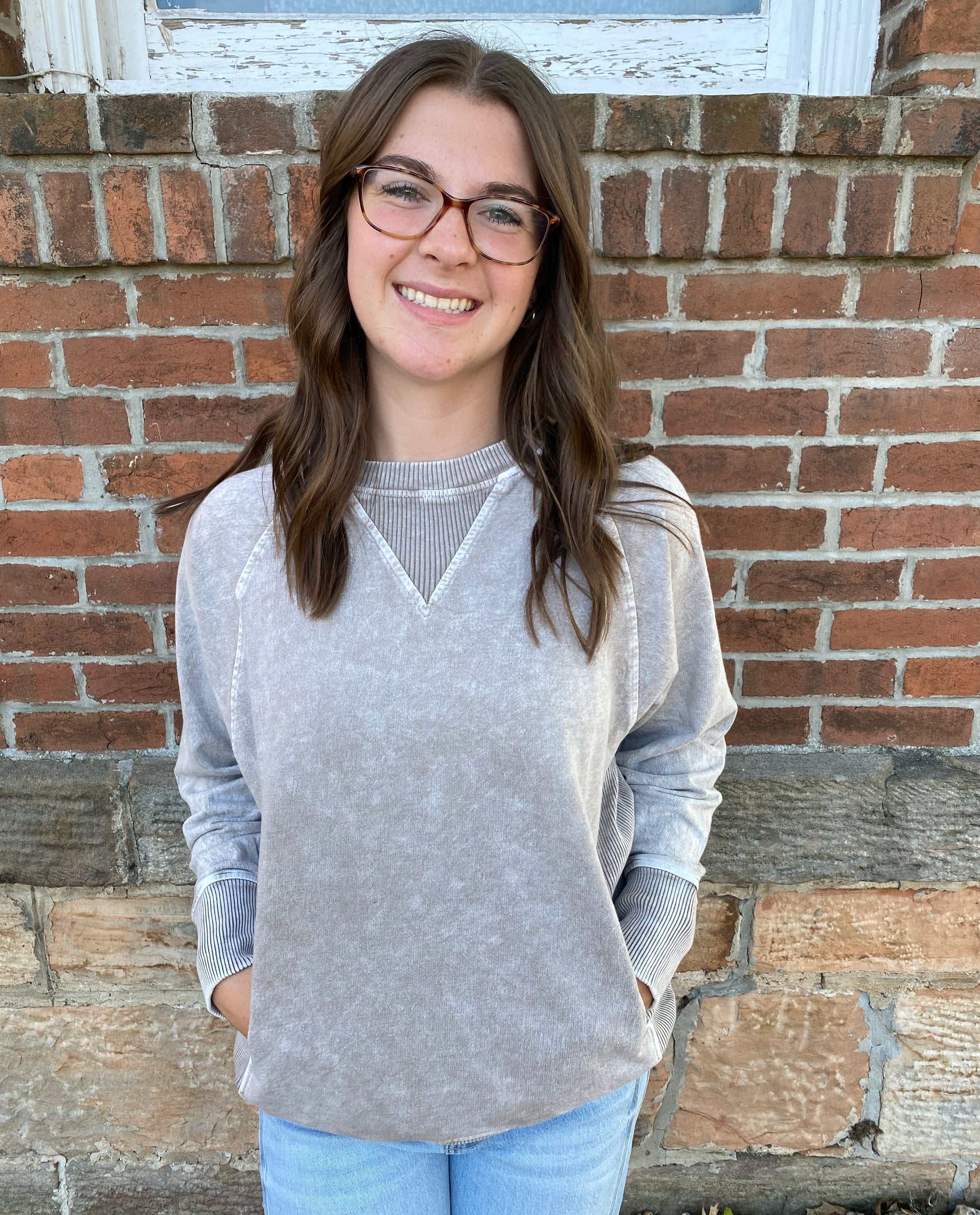 Snow Washed French Terry Round Neck Pullover, Ash Mocha