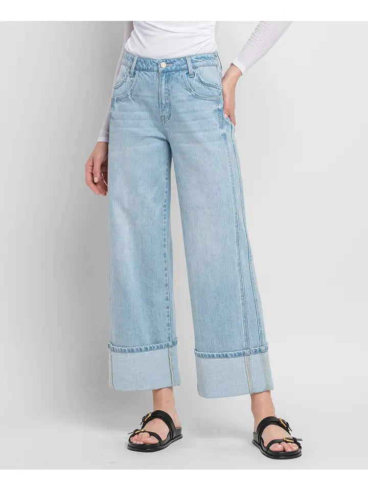 Vervet High Rise Cuffed Baggy Wide Leg Jeans