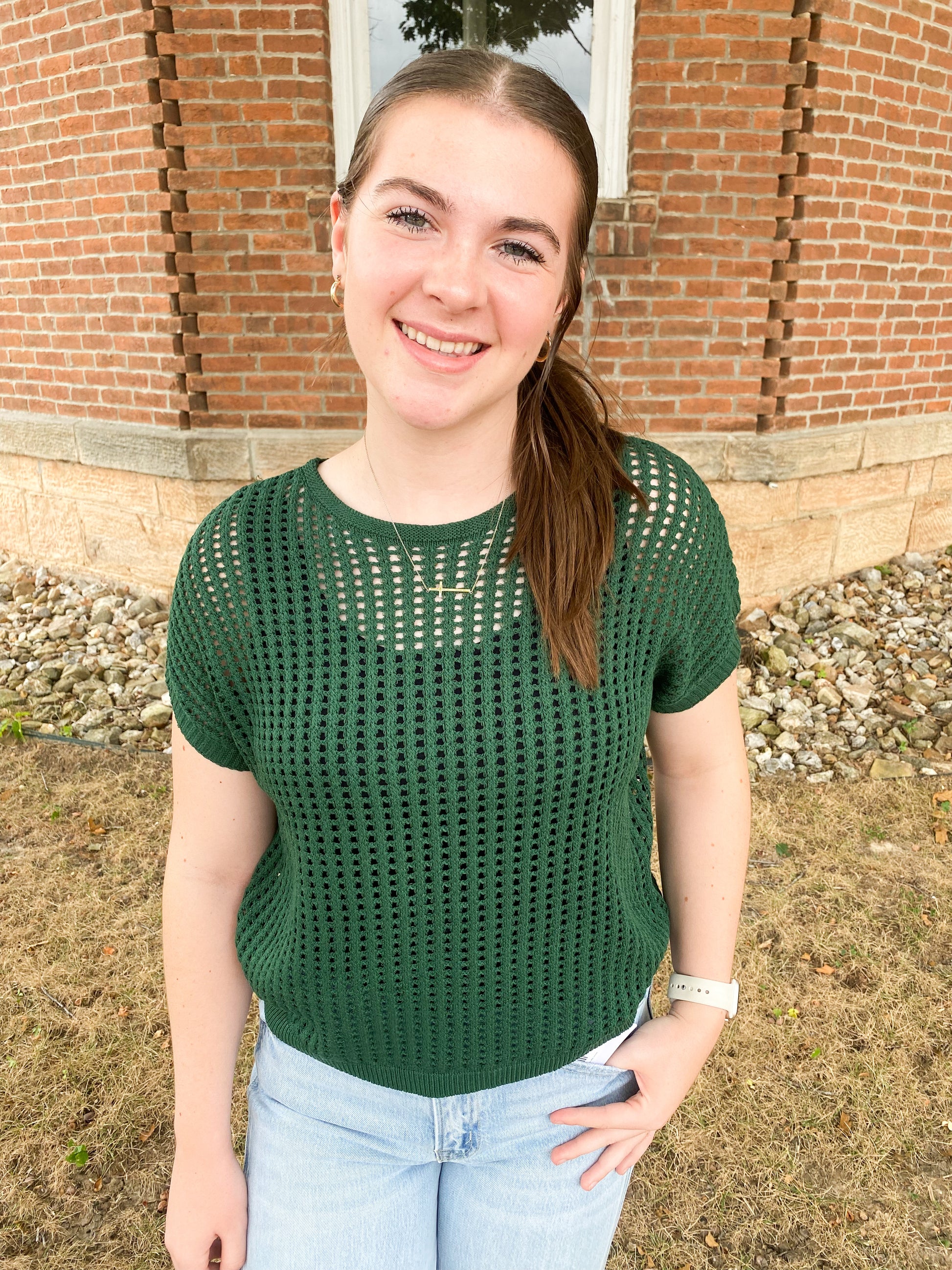 Viscose Crochet Knit Sheer Hollow Sweater, Dark Green
