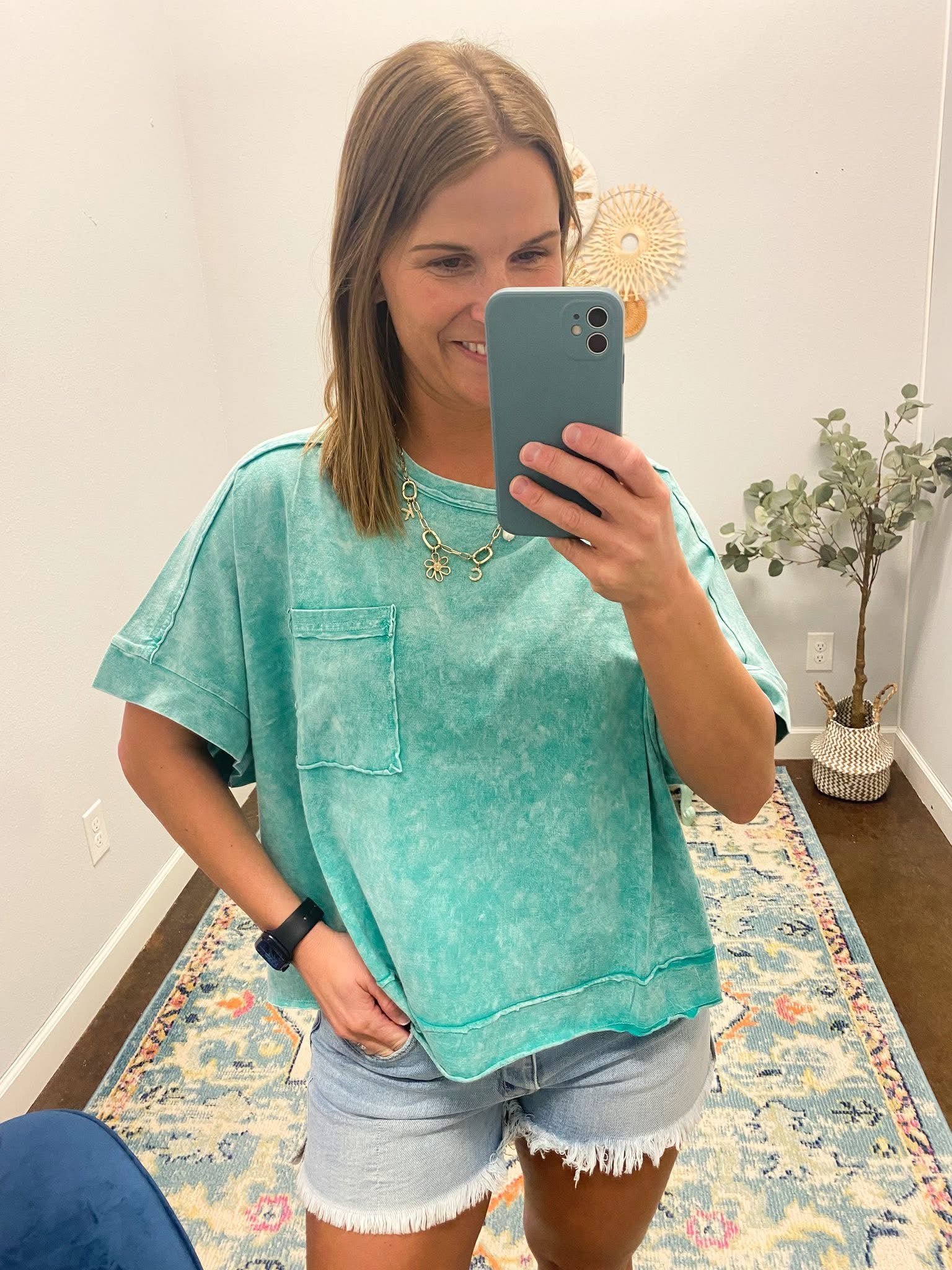 Washed Exposed Seam Oversized Tee, Kelly Green